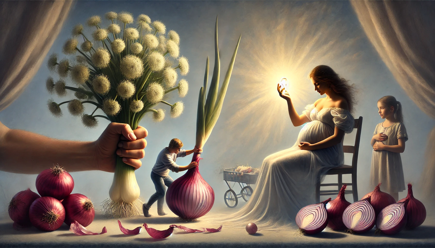أما في منام الحامل، فيُفسر تقشير البصل بولادة قريبة؛ فالرمز هنا يعكس قرب انتهاء فترة الحمل وتخفيف الأعباء التي تحملها. وفي منام المرأة المتزوجة، قد يدل تقشير البصل على حمل كاذب أو أمر مشابه، مما يُعد تنبيهًا بعدم الإفراط في التوقعات دون التأكد.
